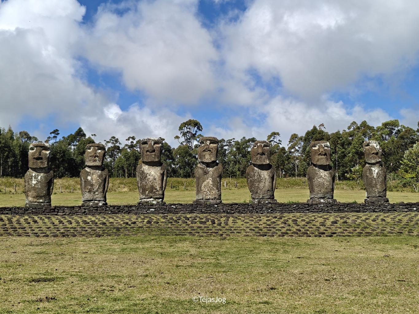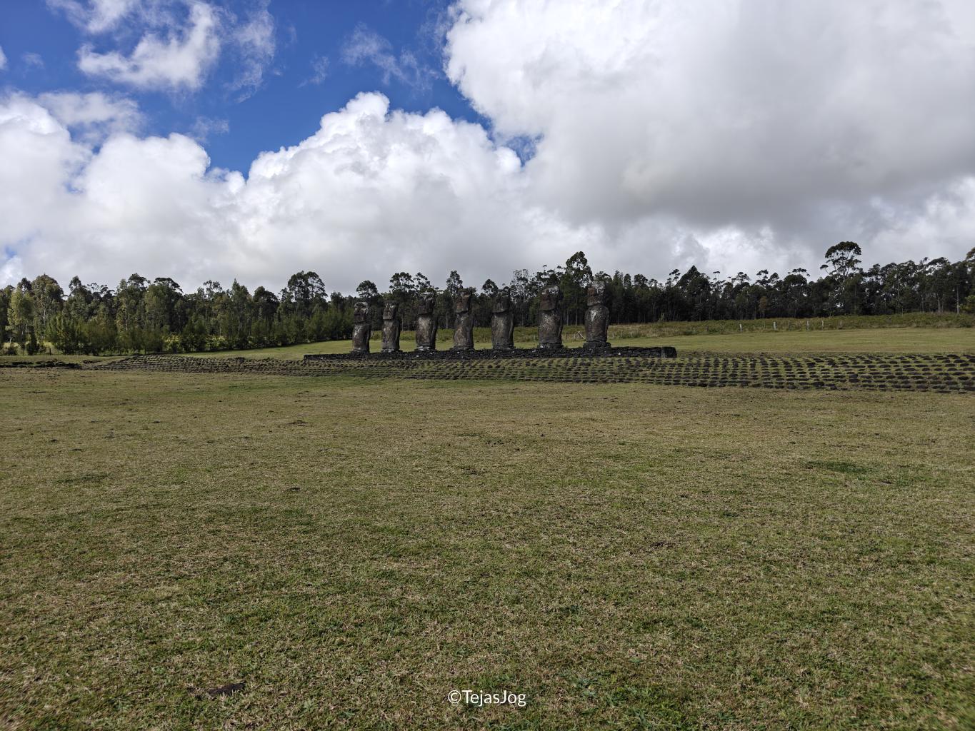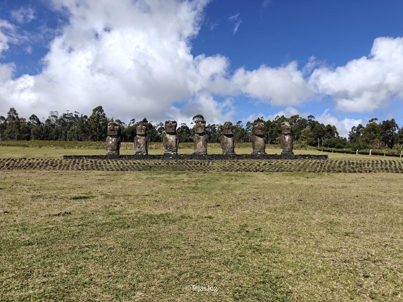 The second stop was Ahu Akivi which was close by. This is an archaeological site featuring 7 moai positioned to face the setting sun during the Spring Equinox. This was the first time we were seeing the moai in person and they were just as impressive as the pictures we had seen before.