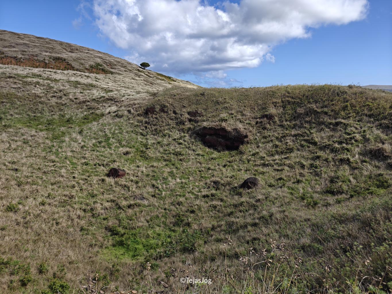Our last stop on this tour was Puna Pau. It was the place where there was a red slag quarry where most of the topknot stones were carved. There were many unfinished pieces. The hill also had panoramic views of the surrounding area.