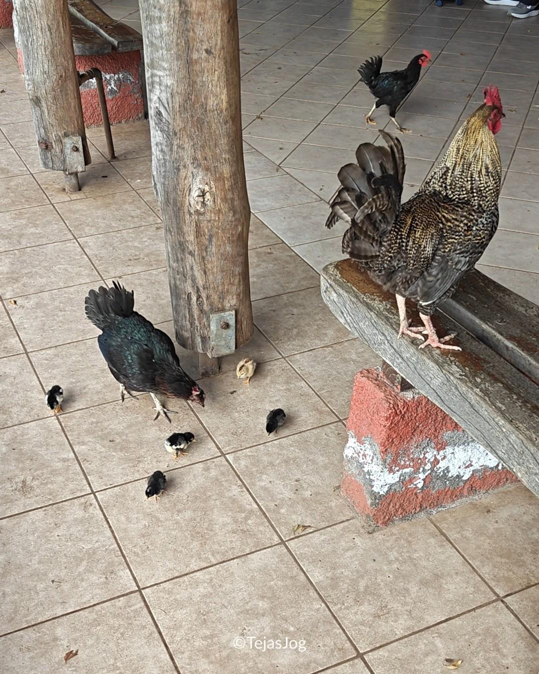 Our guide dropped us off at the airport. We were auto-assigned window seats in the same row on either side of the aircraft. We tried to get seats together, but the only ones available were at the back with less legroom. So we decided to keep our existing seats for this flight. There was a police verification before security check. The departure area of the airport had an open garden with an assortment of poultry running around, which was something we had not seen before. It was nice to spend time outdoors while waiting for the flight. The garden also had very nice views of the tarmac and the aircraft when it arrived.