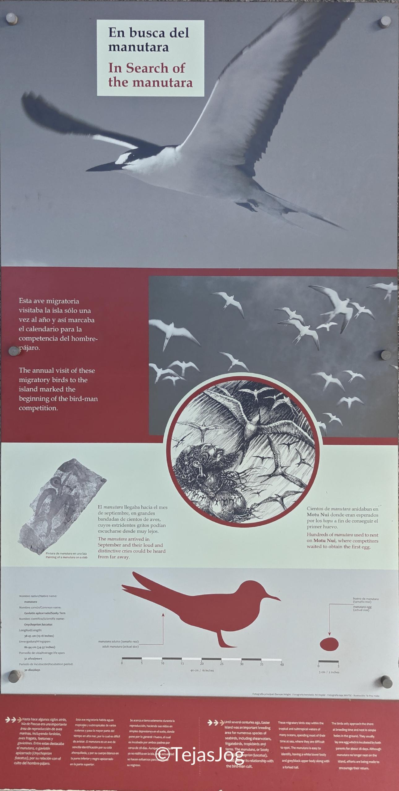 Men would swim from the Orongo village to the islets to find the first egg of the season from the nesting birds and carry it back. The clan of the man who successfully returned to Orongo first would win and would rule the island for a year.
