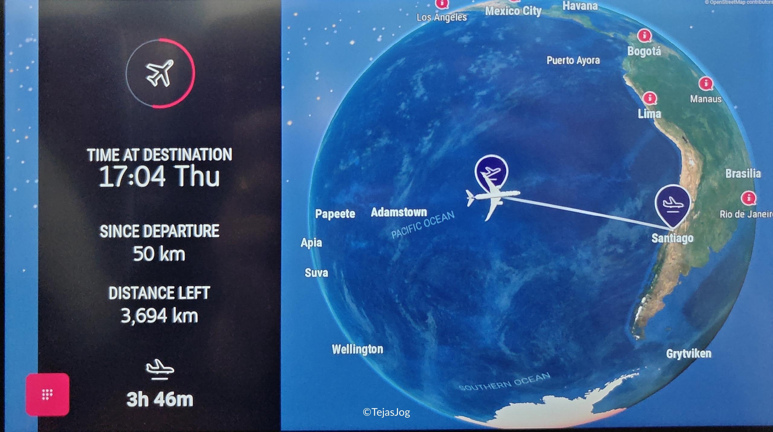 The flight was smooth and comfortable. There was a small lunch and beverage service. We landed at Santiago on time. We picked up burgers for dinner in the arrival hall. The fast food at Santiago airport was quite expensive compared to airport food we had at Buenos Aires in Argentina a few days ago.